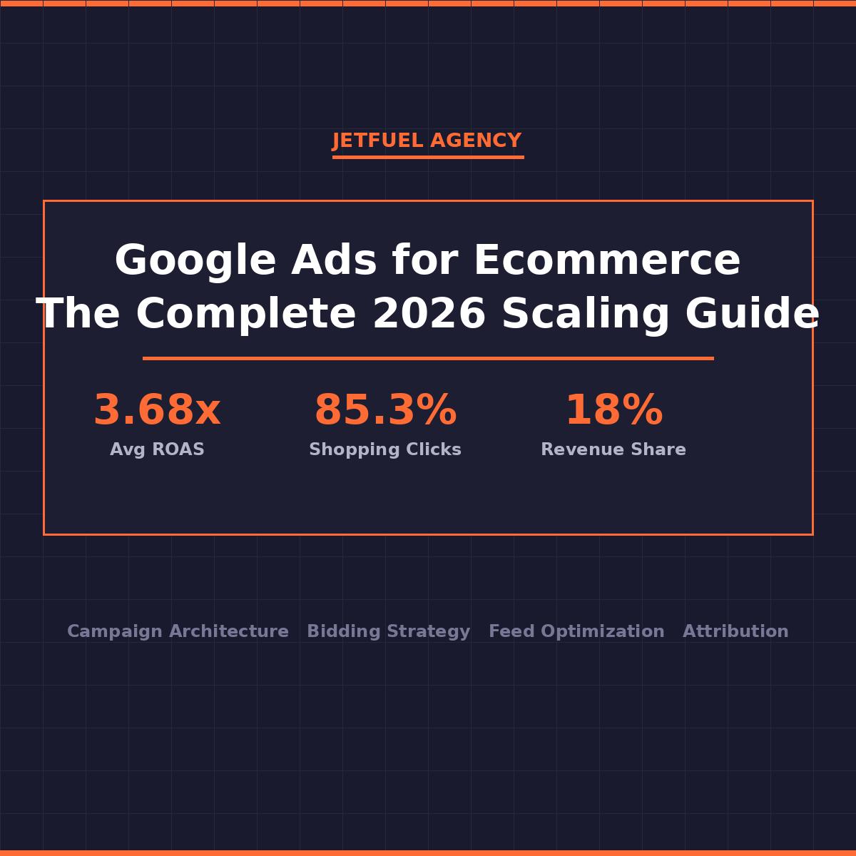 Scale your ecommerce brand with Google Ads in 2026. Covers the Three-Layer ROAS Stack, Campaign Tiering, Performance Max vs Shopping, bidding strategy, feed optimization, and attribution. 5,000+ words.